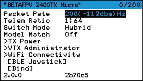 BETAFPV Micro TX Module ELRS V2.0.0 firmware is published. The firmware does not include the Binding Phrase. So please make sure the receiver works on officially major release V2.0.0 protocol and no Binding Phrase set.