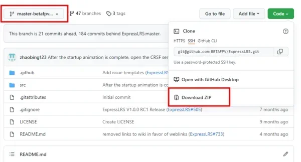 First, download the source code of master-betafpv-oled-menu branch to local from Github.