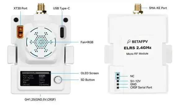 ELRS Nano TX Module is the first BETAFPV module, which is based on the ExpressLRS project. The ExpressLRS is one of the fastest RC links available while still offering long-range performance.