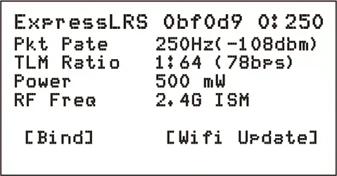 When entering OLED menus page with long pressing, the connection between RF TX module and receiver works normally. Please do not change the Pkt Rate, otherwise, you must re-power the receiver.