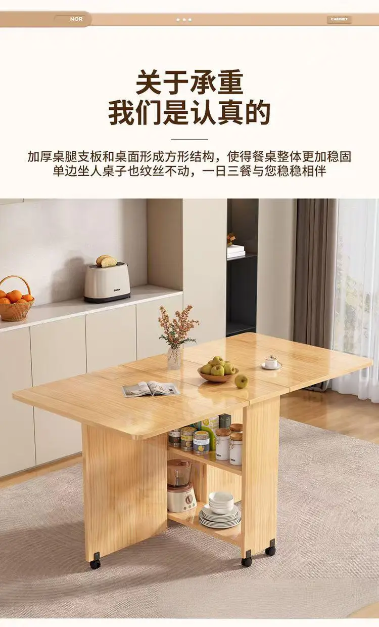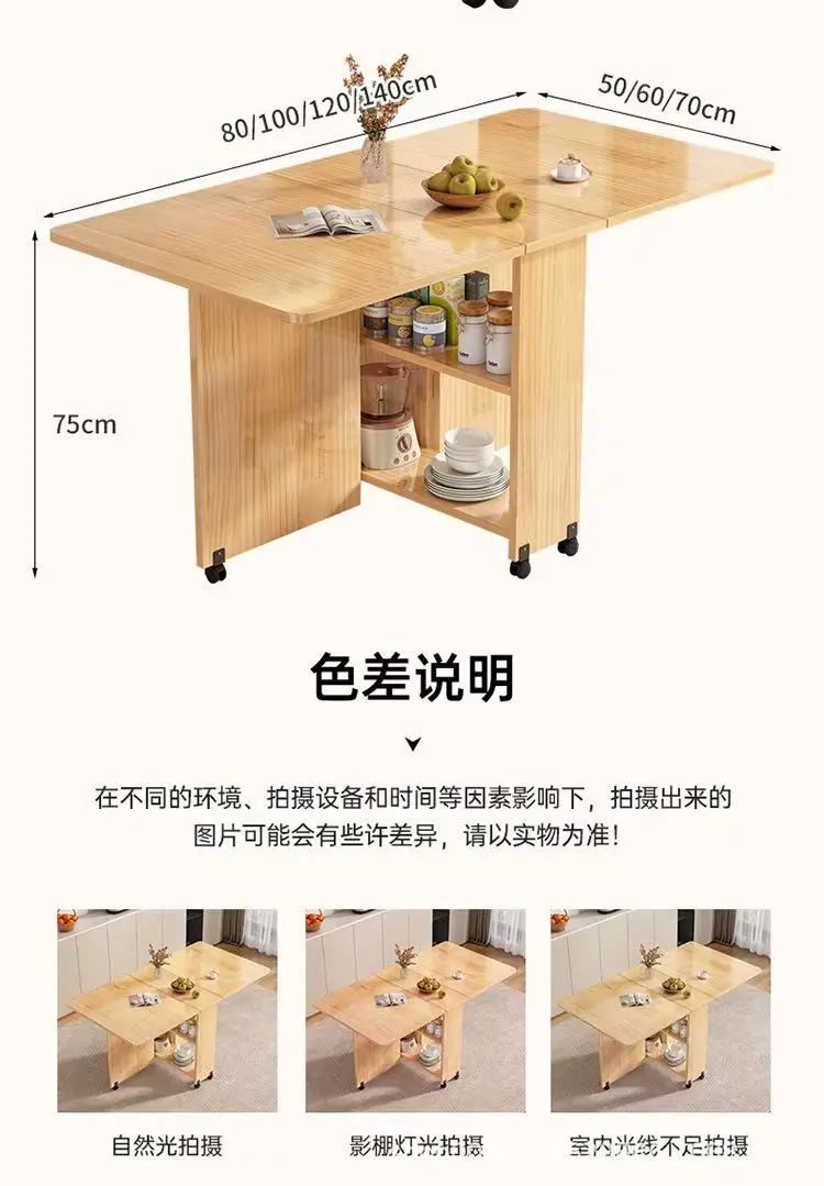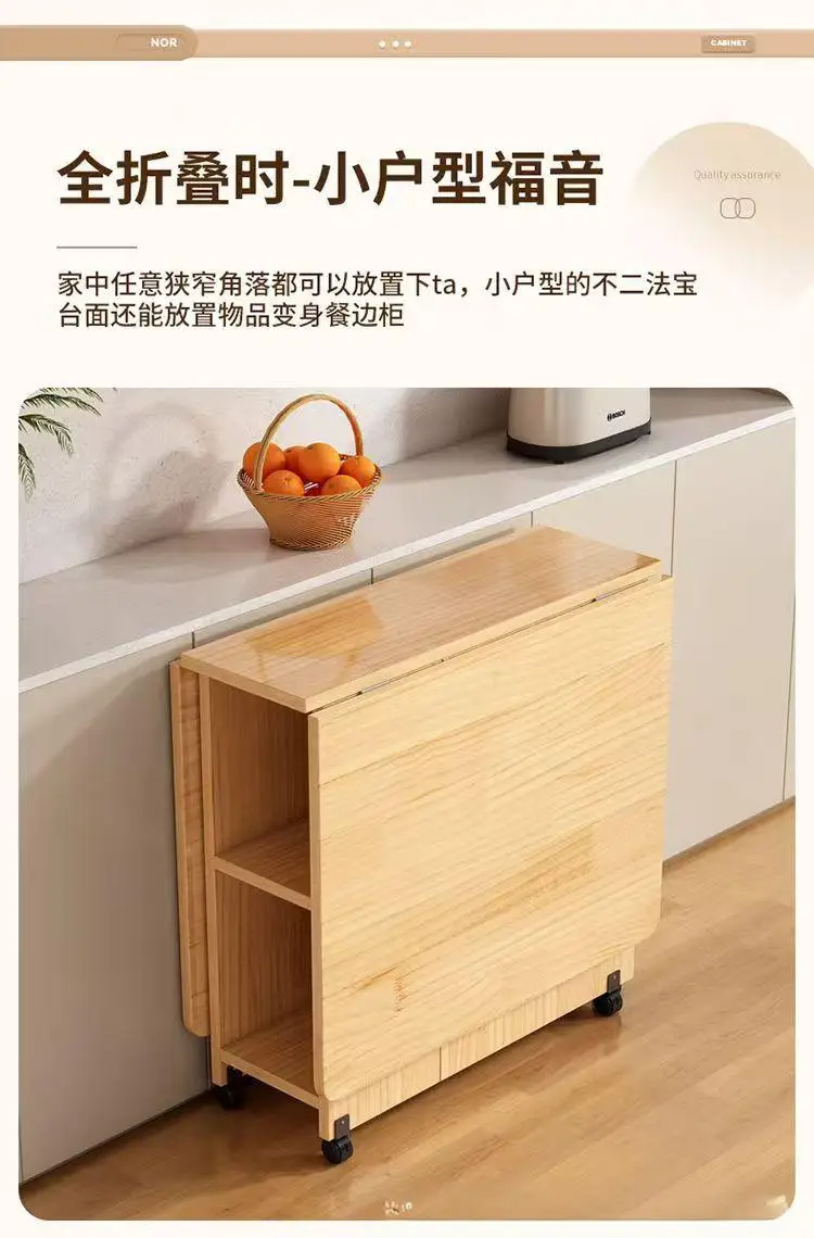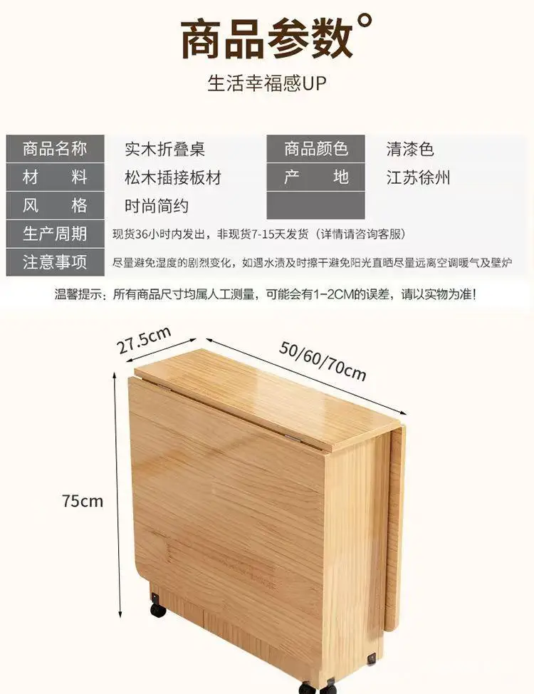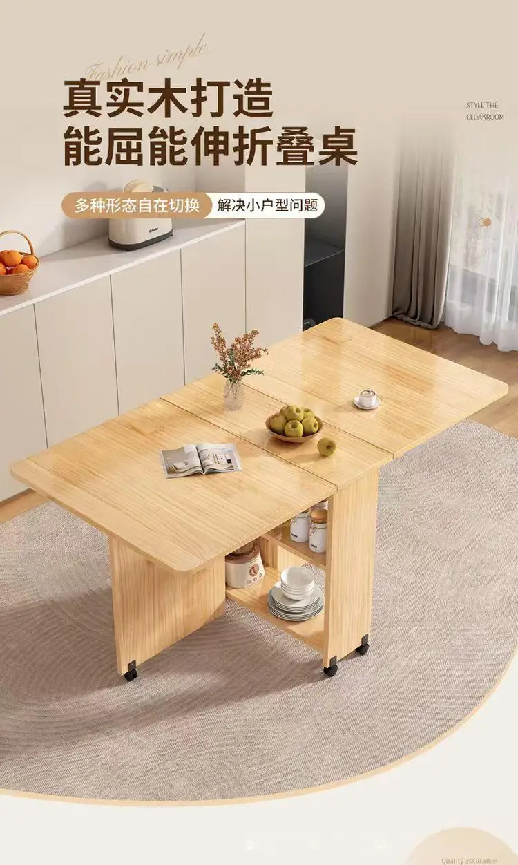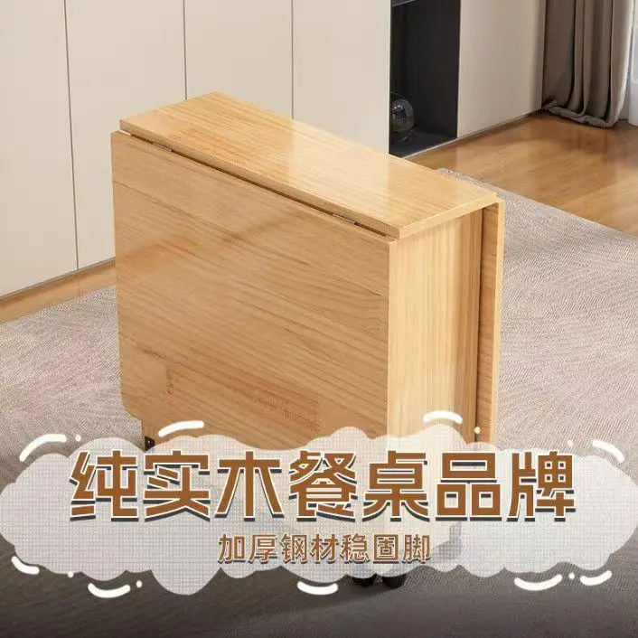Solid wood folding dining table small household dining table multifunctional rectangular movable folding table