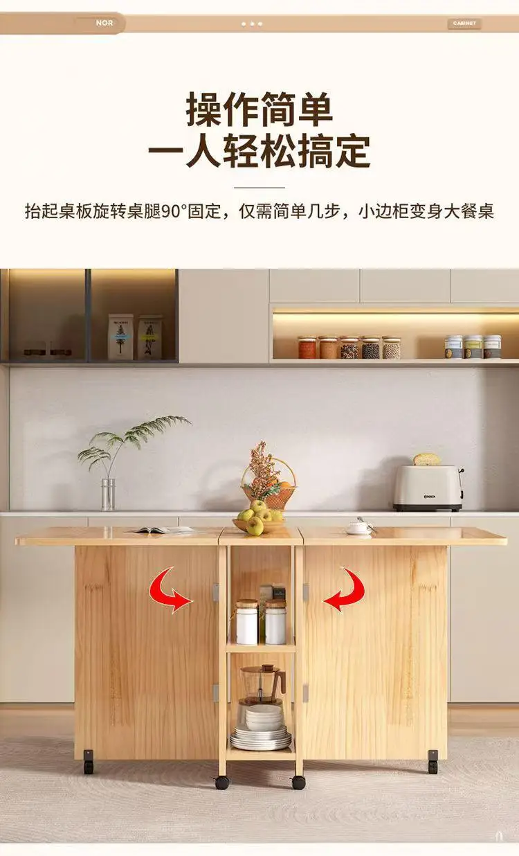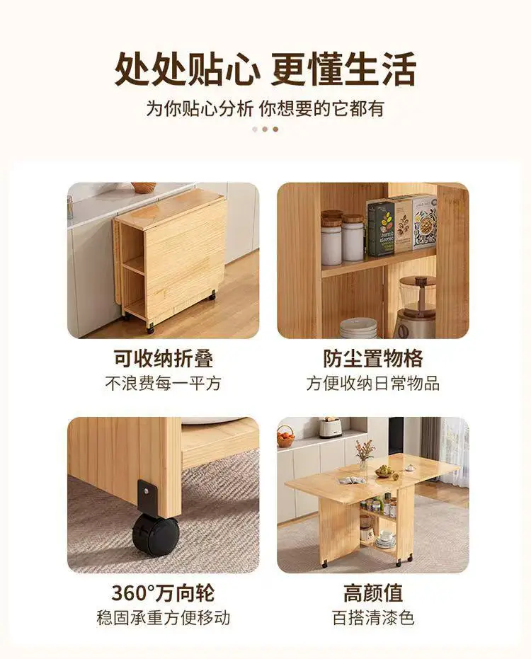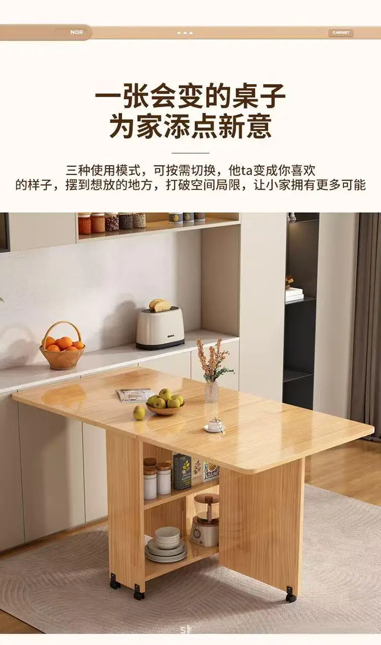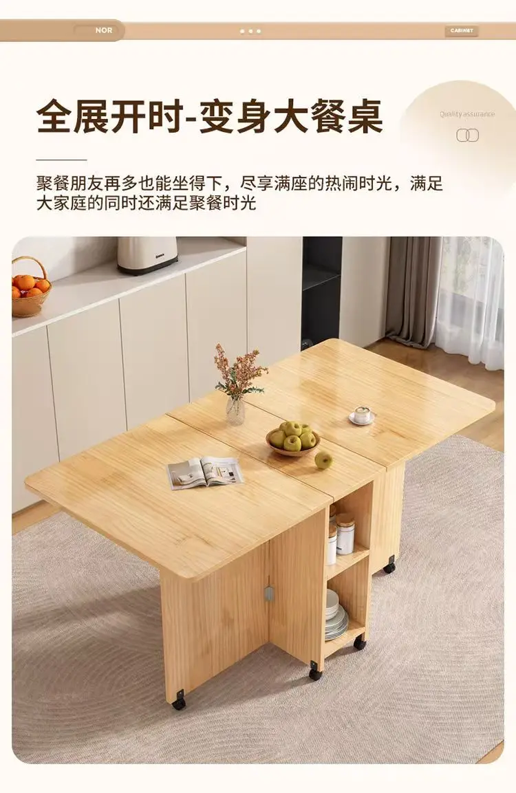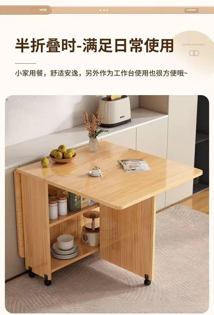 Solid wood folding dining table small household dining table multifunctional rectangular movable folding table